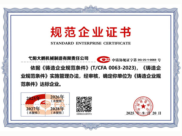 公司順利通過質(zhì)量管理體系認(rèn)證、環(huán)境體系認(rèn)證、職業(yè)健康安全管理體系認(rèn)證、環(huán)評。2015年5月獲國家工信委頒發(fā)的《鑄造企業(yè)準(zhǔn)入條件》;2019年做了安全現(xiàn)狀評價;2020年取得了排污許可證。